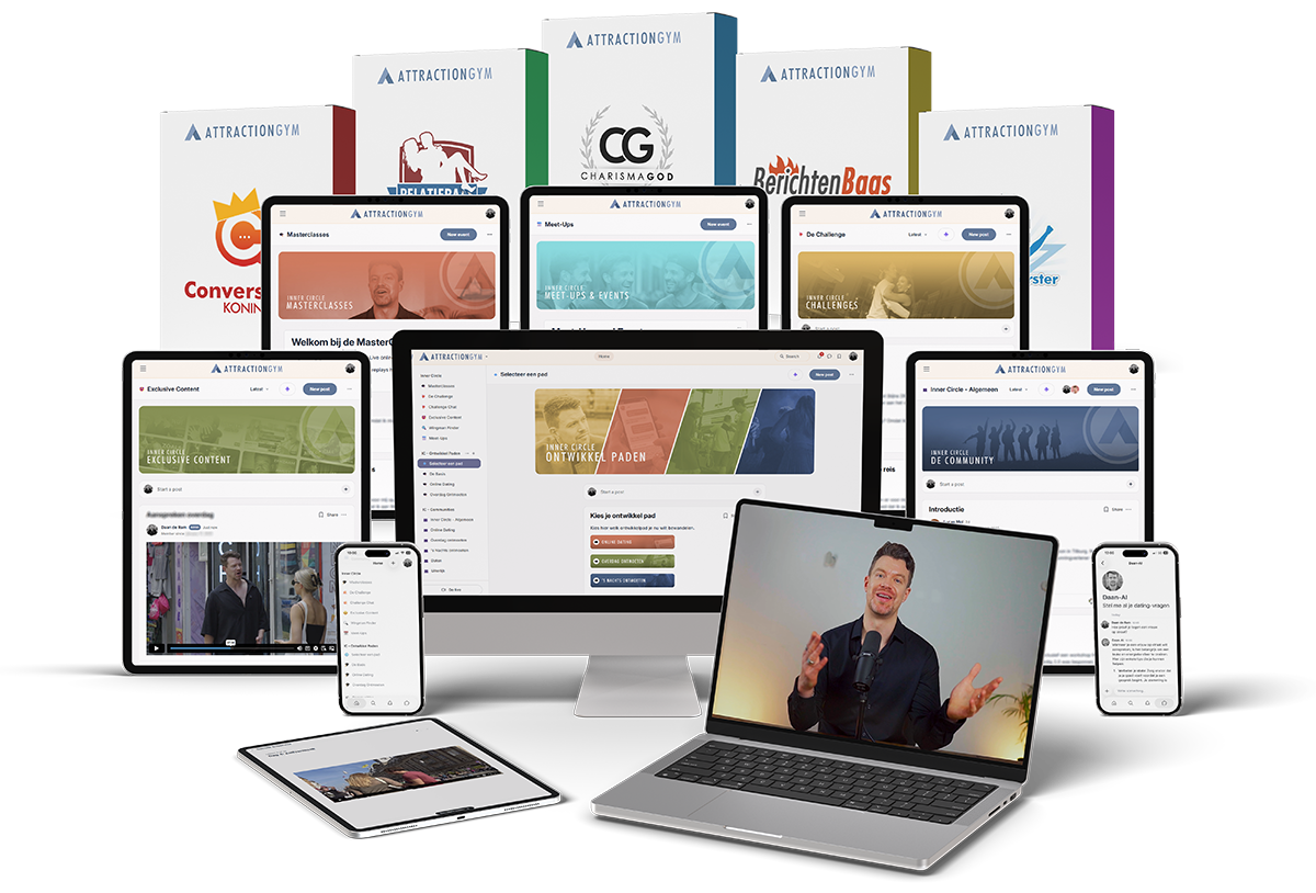 Niet alleen krijg je toegang tot een handvol cursussen waar je stap-voor-stap exact leert hoe je vrouwen het hoofd op hol brengt op dating apps, op straat, in de kroeg of op je werk...